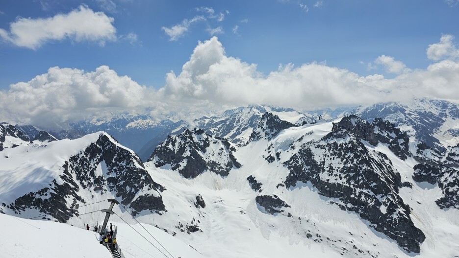 리프트를 오르다 보면 한번 내려서 갈아타야 하기 때문에 내리게 되는데 여기 높이가 2,428미터나 됩니다. 한라산(1947미터)보다 약 500미터 더 높은 산에 올아온 셈입니다.